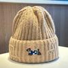 Welpen Bestickte Strickmütze für Damen im Herbst und Winter Warm Süß Niedlich Vielseitig Gesicht Zeigend Klein Überziehmütze, Trendig