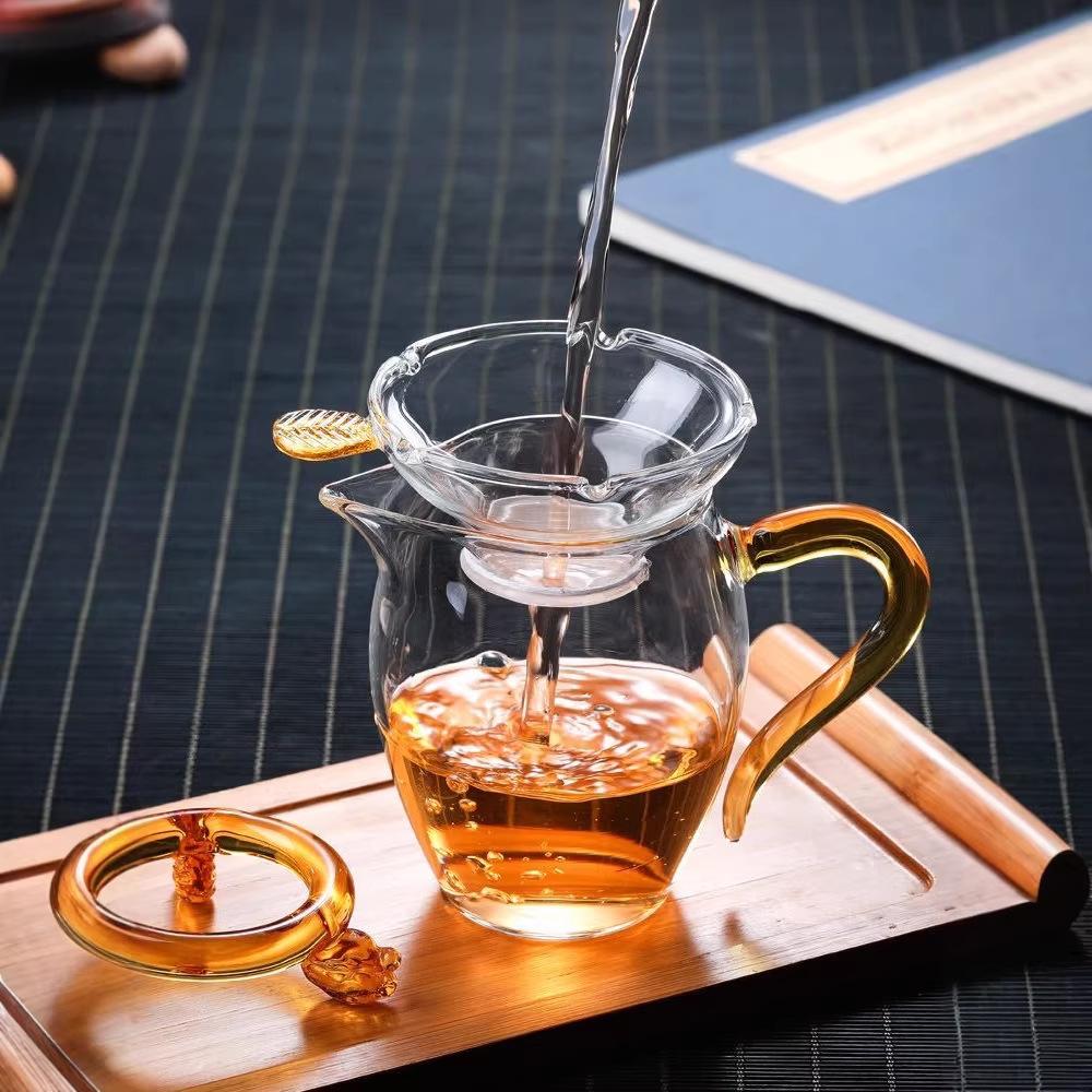 Gläserne Tee-Ausgießkanne, spezieller Teefilter, hitzebeständiger Tee-Ausgießer, Teefilter, Teezeremonie-Zubehör