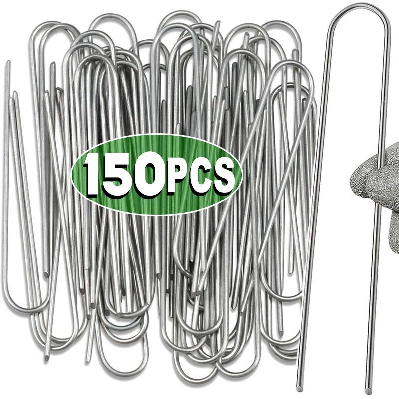 U-type Garden Staples Heavy-duty Fence Tubing Stakes Sod Pins Galvanized Landscape Spike for Holding Lawns Barrier Ground Nail