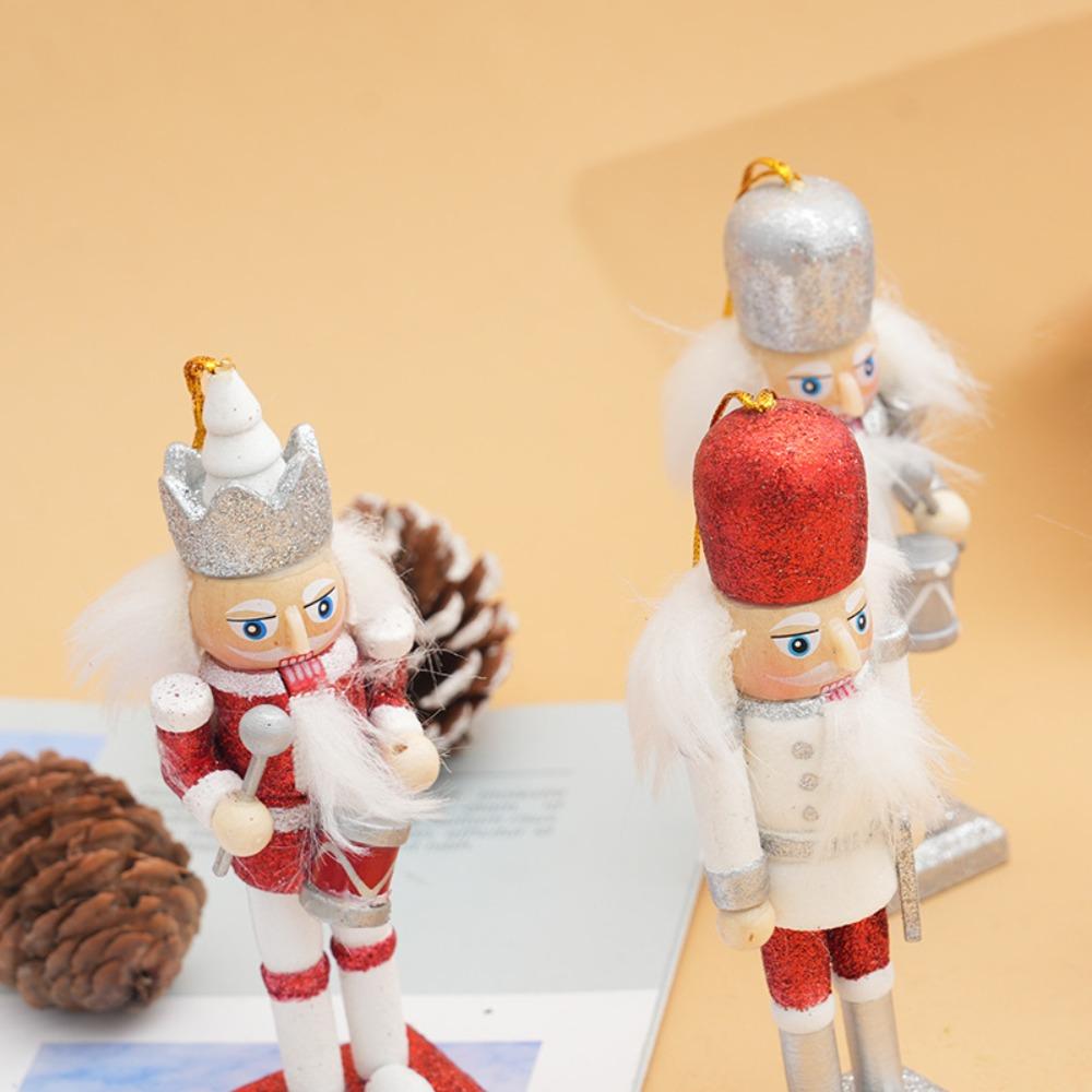 5Pcs/Set Wood Nutcracker Puppet Ornament with Hanging Rope Multiple Style Nutcracker Soldier Pendant Classic Glitter