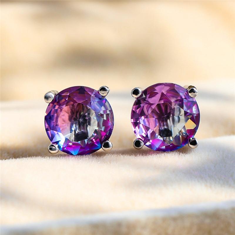 Luxus Damen Kristall Regenbogen Zirkon Stein Runde Steckerohrringe Vintage Silberfarbe Hochzeit Mode Für Frauen