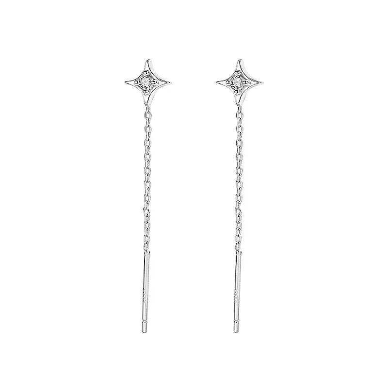 Tibetan Silver Mini Zircon Star Long Tassel Drop Earrings for Women Minimalist Cute Fashion Shining Accessories