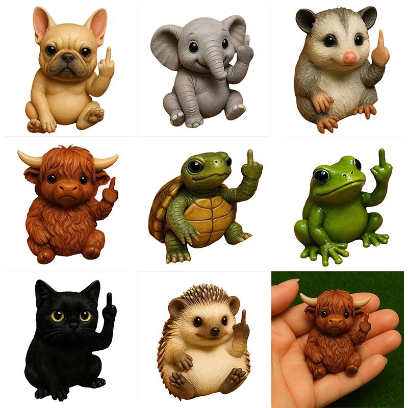 Lustige Mittelfinger Tierstatue Mini Hund Katze Figur Schreibtischornament Harz Hochlandrind Frosch Skulptur Für Zuhause Büro