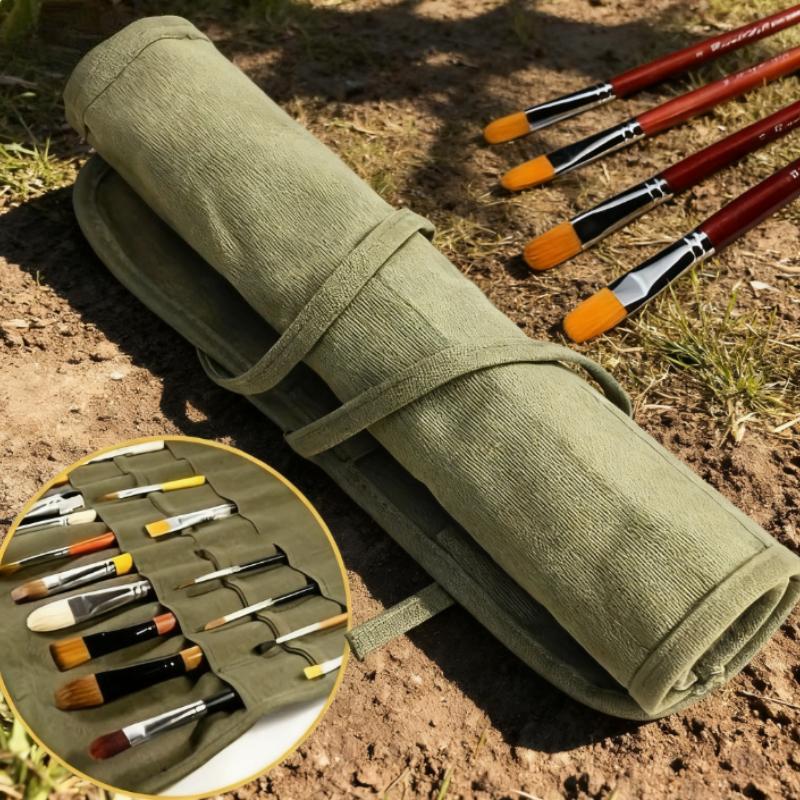 1pc Portable Roll-Up Brush Holder, 22 Holes Zipper Pouch for Makeup Brushes, Watercolor Oil Pens, Artist Travel Storage Case