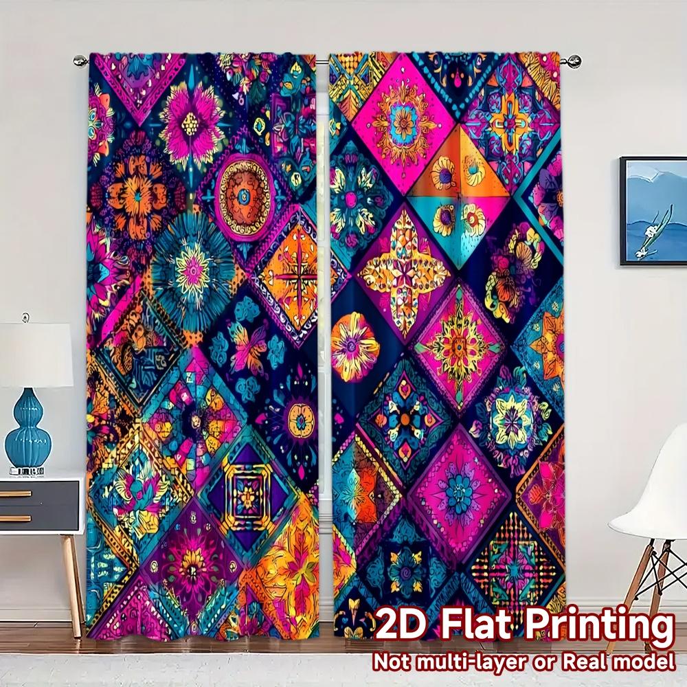 2pcs 2D FLAT PRINTING Curtains (Without Rod) Colorful Mosaic Creative Chic Curtains Polyester Curtains Festive Decorative for