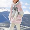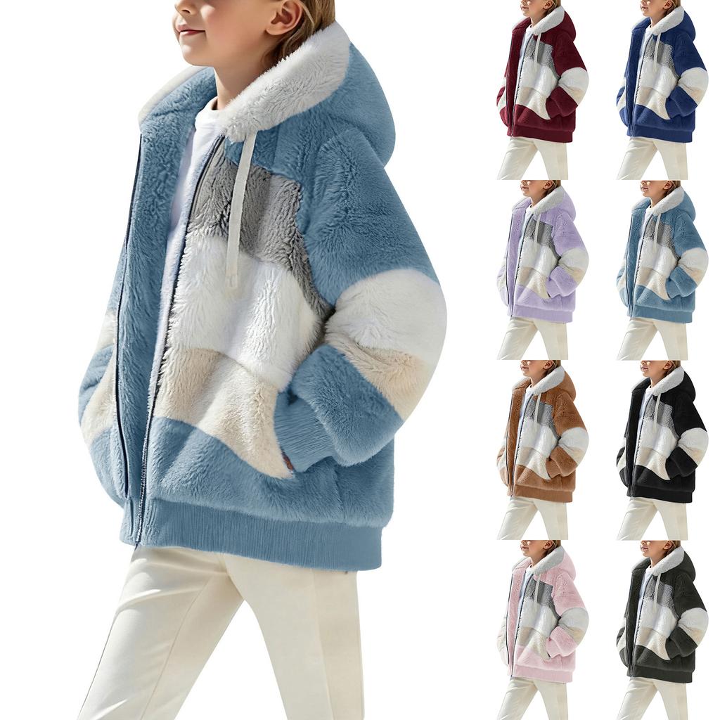 Mädchen Lässiges Fleecegefüttertes Verdicktes Oberteil Mittelgroß Kinder Kapuzen-Fleecegefütterte Farbblock-Jacke