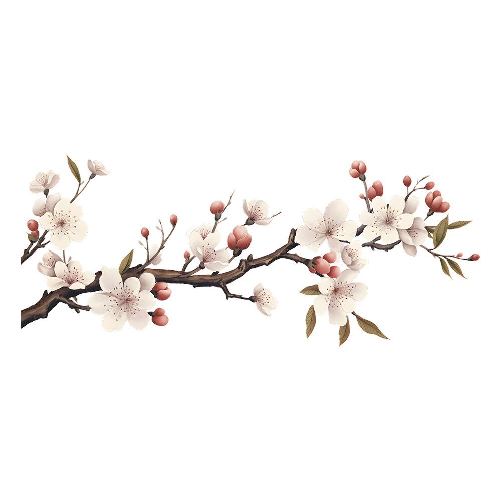 Selbstklebender Wandaufkleber mit Aquarellblumenzweig und Vogelmotiv für Schlafzimmer, Kopfteil oder Arbeitszimmer