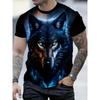 Men's Wolf and Cosmos Print T-Shirt Regular Crew Neck Casual Short Sleeve Top Fashion Street Party Clothing