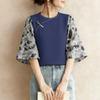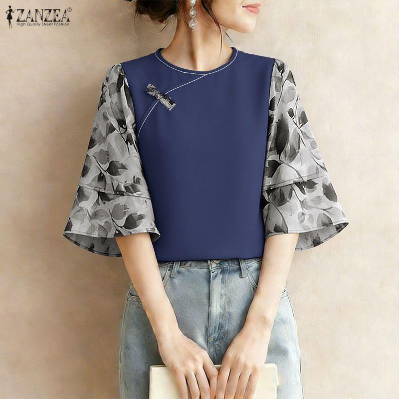 ZANZEA Damen Lässige Rundhals 3/4 Ärmel Locker Patchwork Bluse