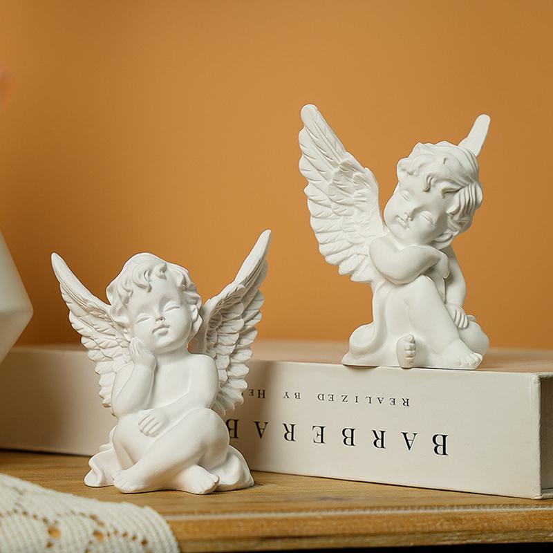 Harz Engel Figuren mit Römischer Säule Putten Statue Flügel Schlafender Denkender Engel für Heim Zimmer Schreibtisch Büro Dekoration