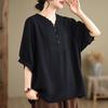 Literarisches und künstlerisches Übergrößen Damen Baumwoll-Leinen T-Shirt Damen Sommer Retro Locker Dreiviertelarm Oberteil