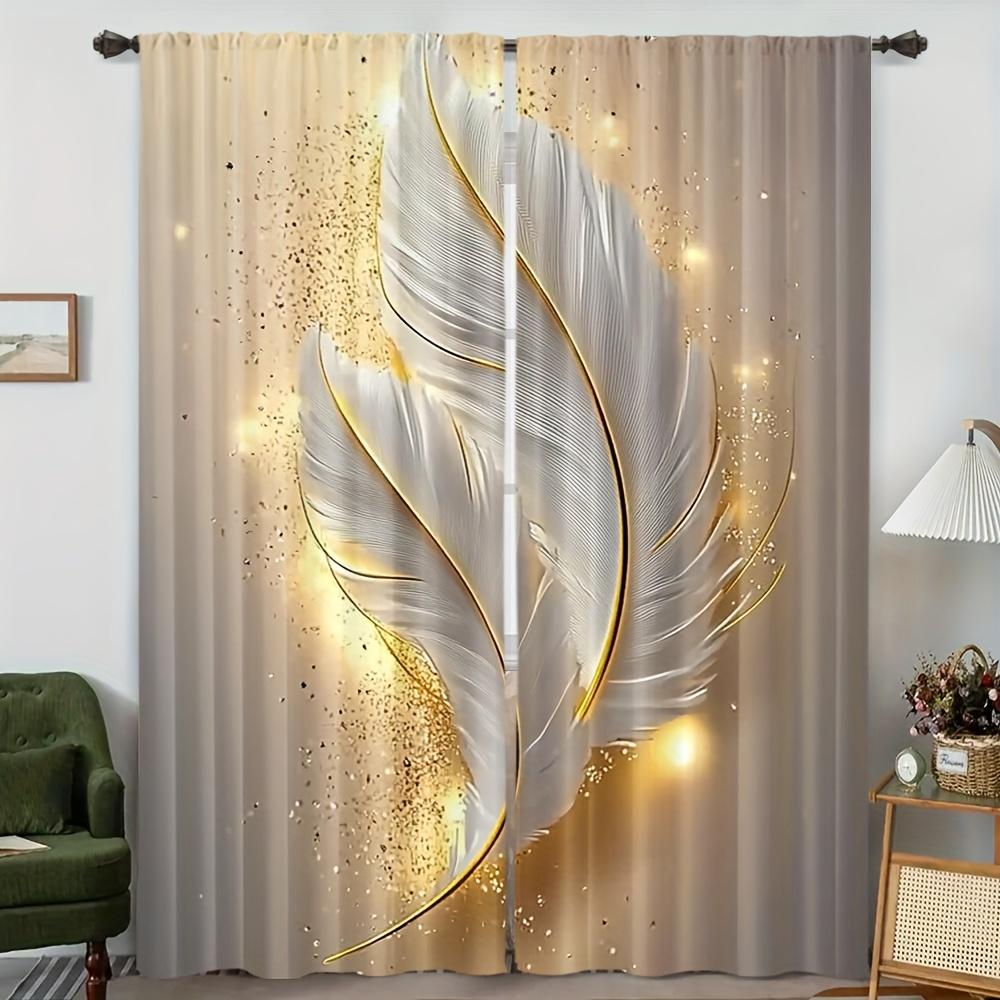 2 Stück Elegante Vorhänge mit Federdruck – Gold und Weiß mit Stangentaschen-Design Ideal für Wohnzimmer, Schlafzimmer, Küche und Büro