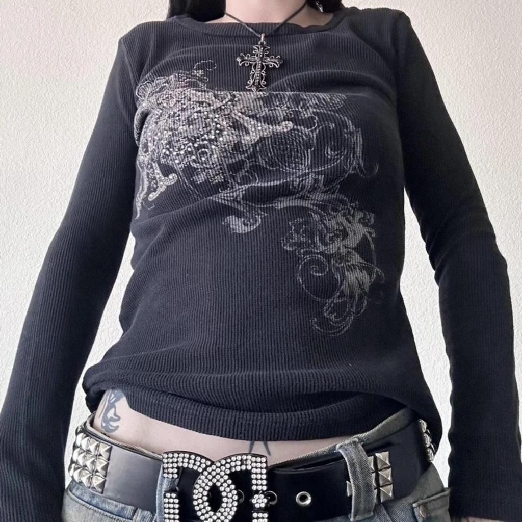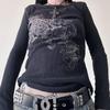 BeatStreet Grafikdruck Schwarzes T-Shirt Damen Herbstkleidung Y2K Cyber Grunge Pullover T-Shirts 00er Retro Ästhetik Cottage Crop Tops