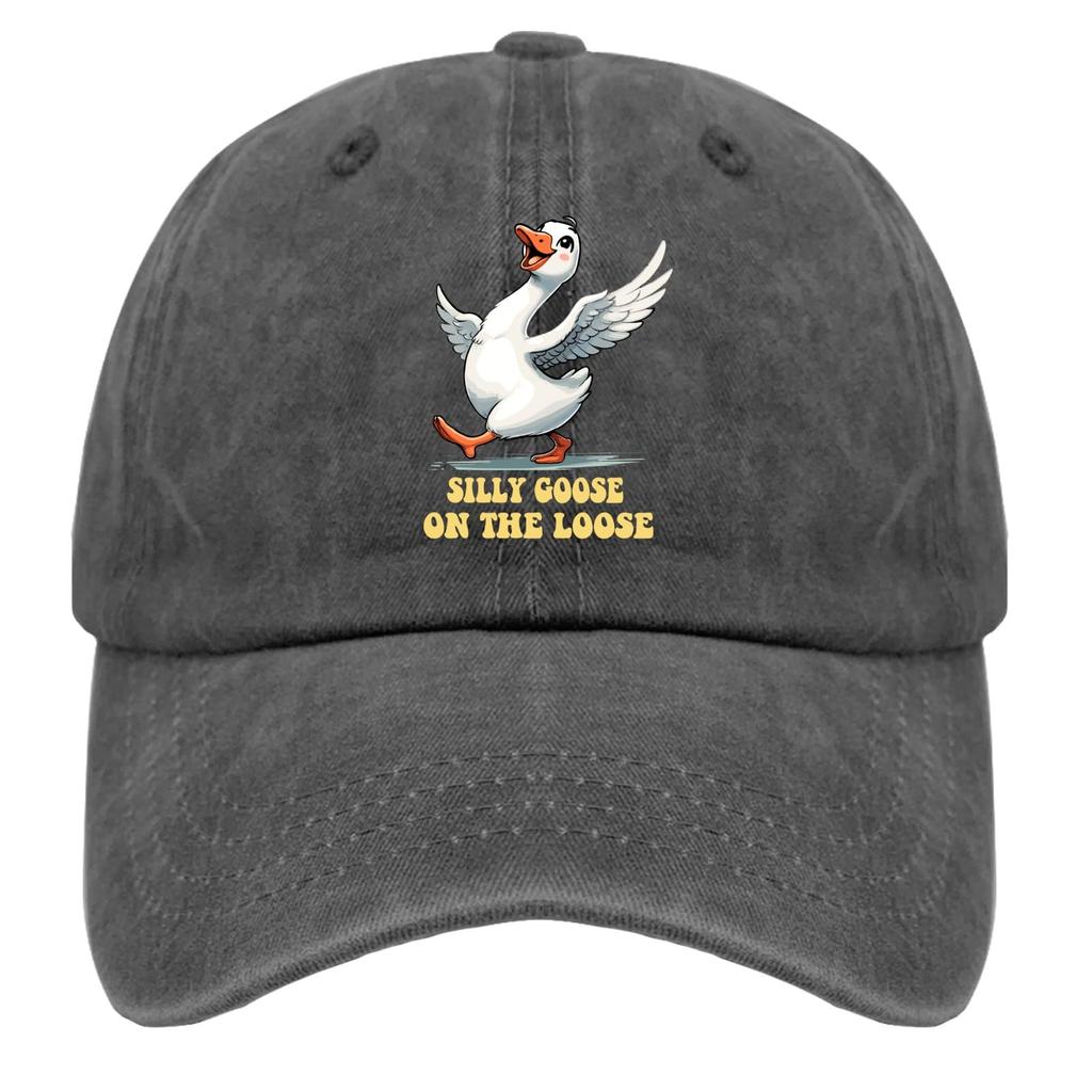 2026 Funny Goose Silly Goose On The Loose Trucker Hat Mens Cap Pigment Black Baseball Hat Gifts For Son Baseball Cap