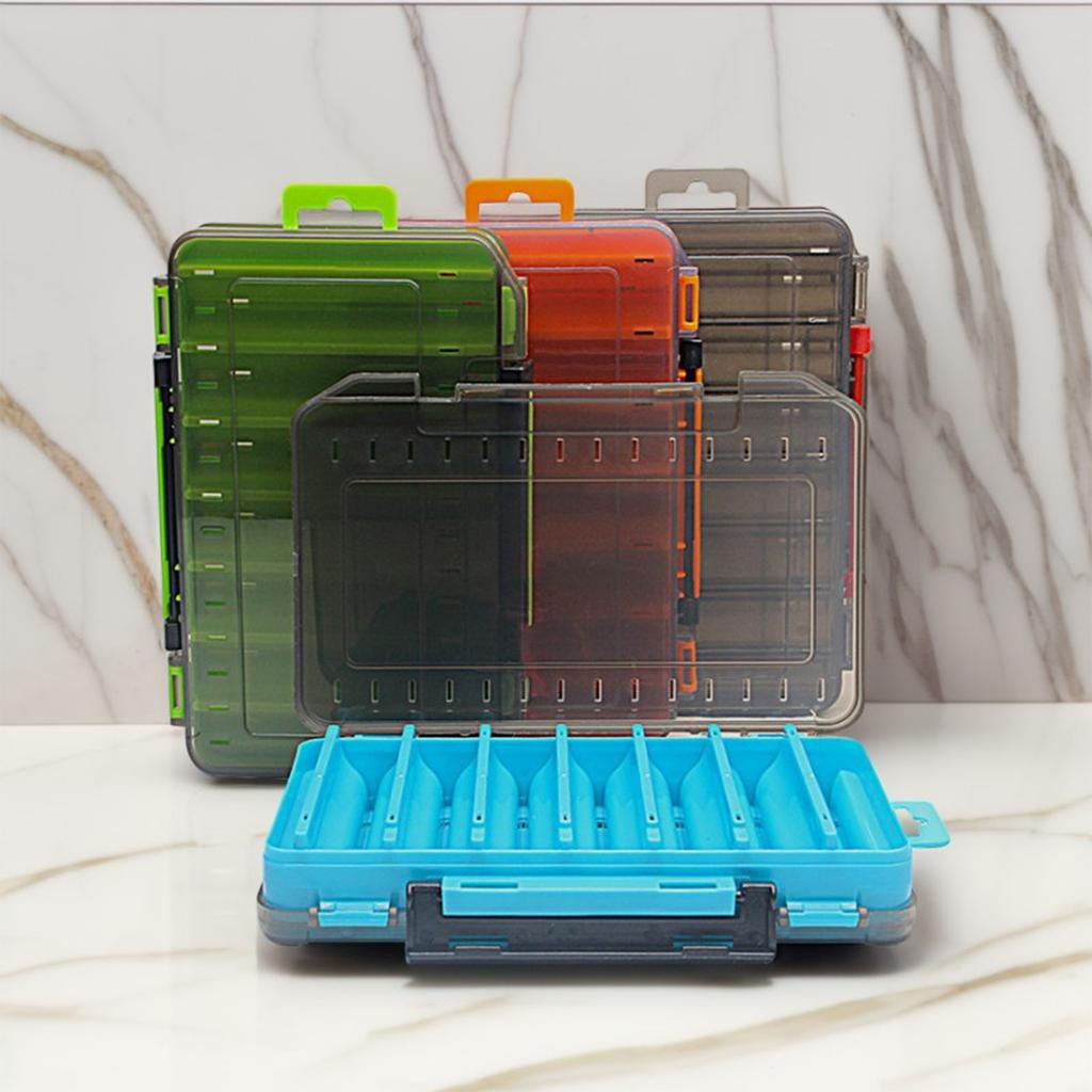 Doppelseitige Köderbox mit 14 Fächern für Wobbler Angelköder Haken Zubehör Aufbewahrungs Organizer Box