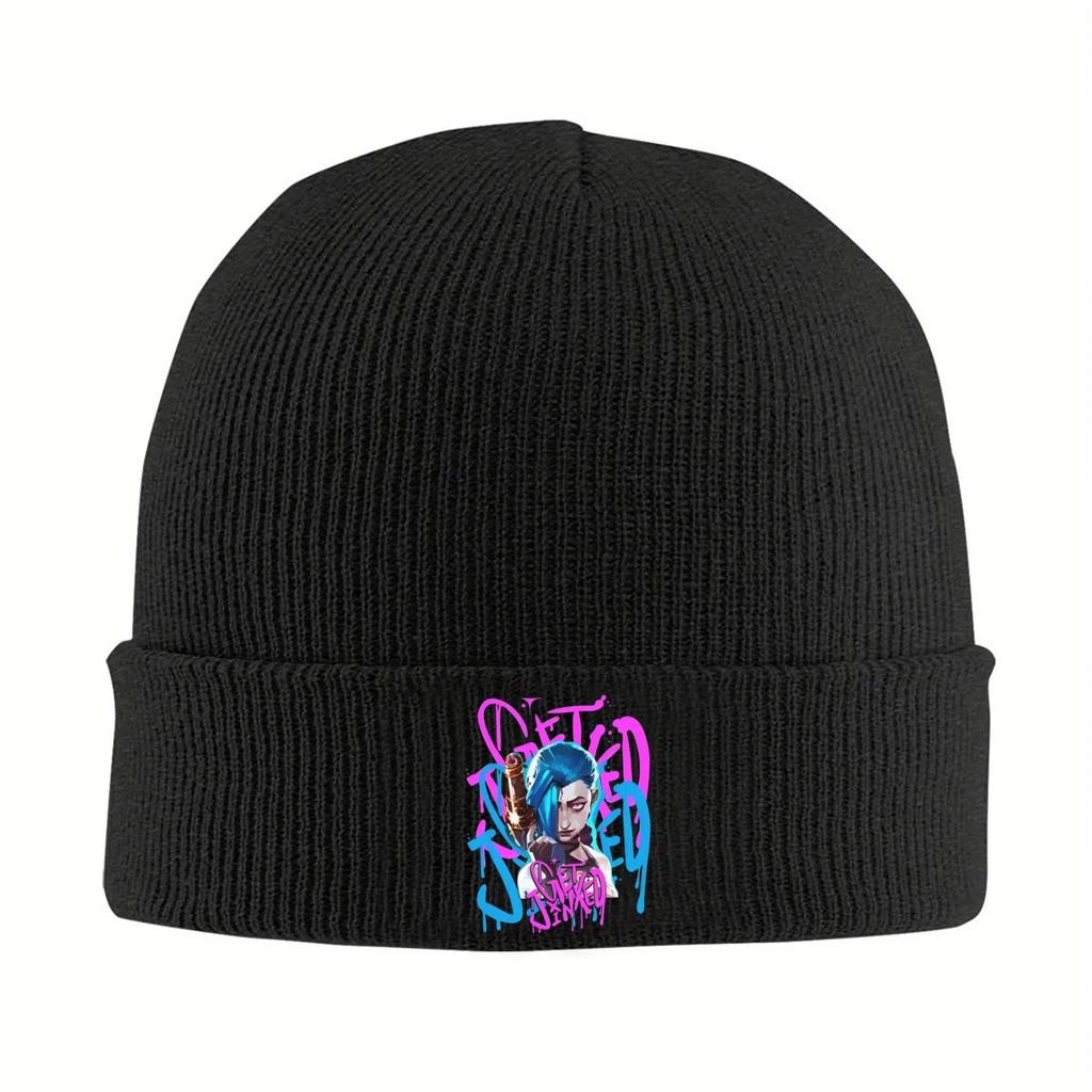 Jinx Anime Arcane Chaos ist mein Ruf Gestrickte Mützen für Damen Herren Beanie Wintermützen Acryl Warm Melonenmütze
