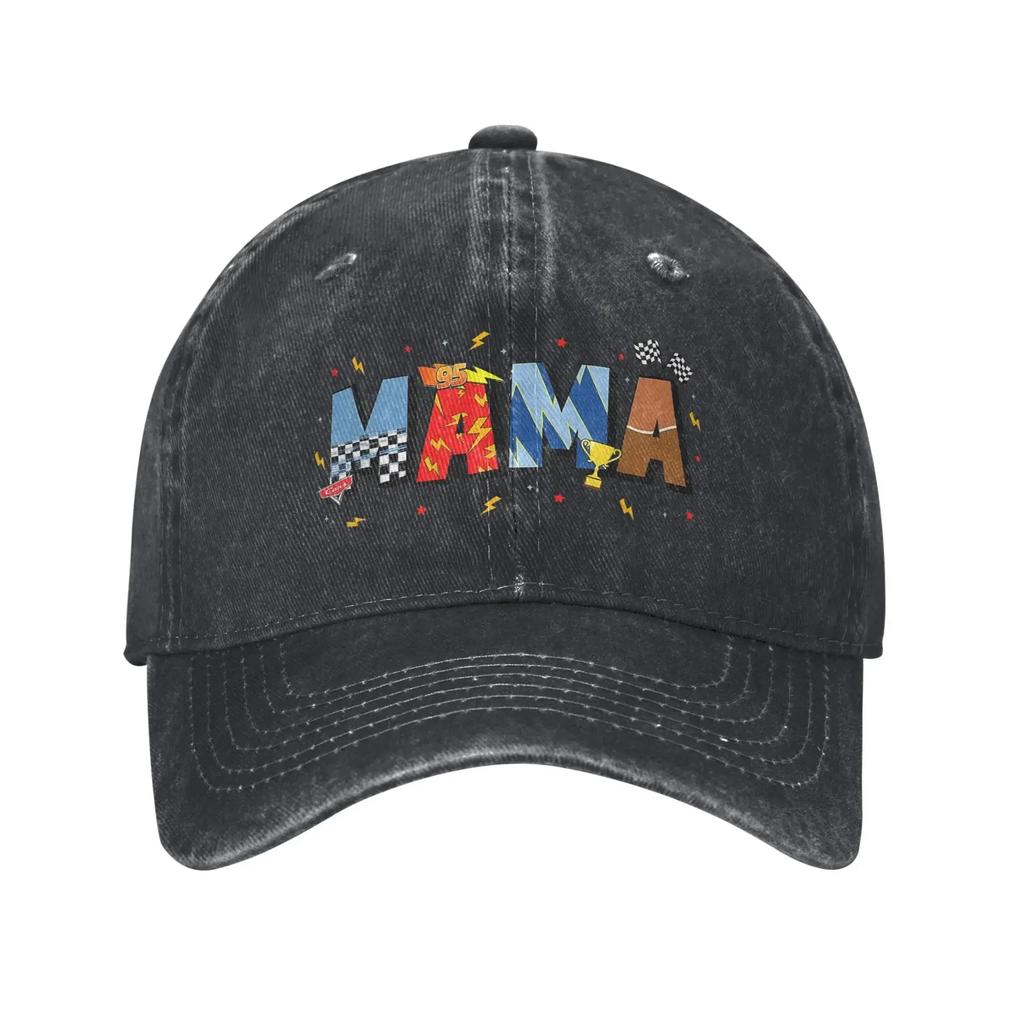 Retro Lightning McQueen Cars Muttertag Baseballkappe für Männer Frauen Used Gewaschen Snapback Hut Unstrukturiert Weiche Kappen Hut