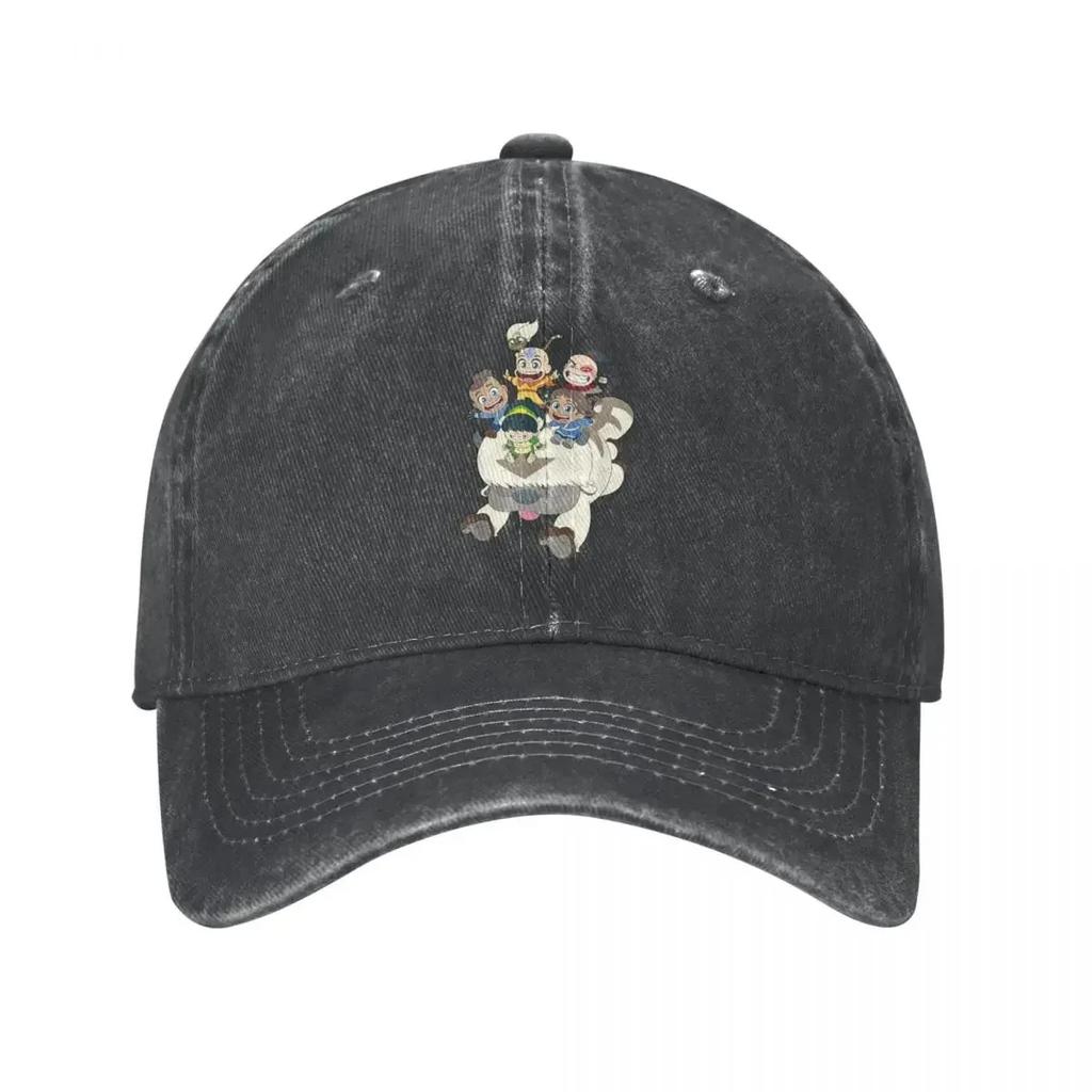 Avatar Der Herr der Elemente Gruppe Chibi Baseballkappen Retro verwaschene Jeans Sonnenschutzmütze Unisex Outdoor Ganzjahres-Reisekappen Kappe