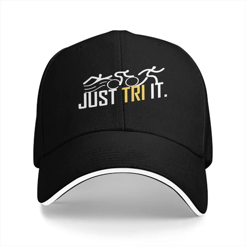 Triathlon Mehrfarbige Kappe mit Schirm Herrenkappe Just Tri It Schwimmen Radfahren Laufen Triathlet Personalisierter Schirm Schutzmützen