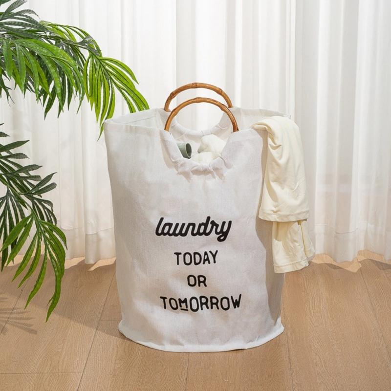 Wasserdichter Baumwoll-Faltkorb mit stabilen Bambusgriffen Vielseitige Aufbewahrung für Kleidung Spielzeug Haushaltsartikel Top-Angebot