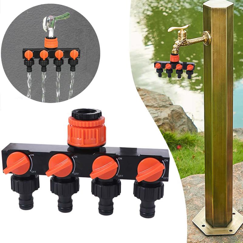 Garden Hose Pipe Splitter 4-Way Faucet Diverter Tap 4 Independent Switches Home Lawn Irrigation Watering Connector Distributor