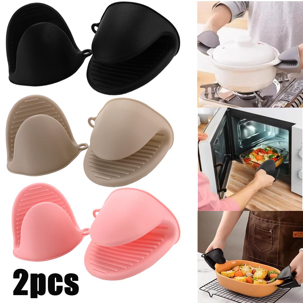 2 Stück Ofenhandschuhe Silikon Hitzebeständig Zangenhandschuhe Verbrühungsschutz Rutschfest Verdickte Handschuhe Mikrowellen Griff Schüssel Topf Küchenwerkzeug