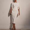 Neues Herbstmode-Kleid für Damen mit Kreuz-V-Ausschnitt, Gürtel und langen Ärmeln in Unifarben