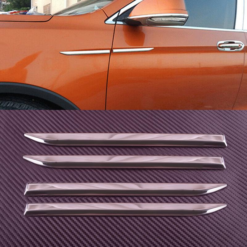4 Stück Universell Edelstahl Chrom Auto Vordertür Seitenkotflügel Zierleiste Abdeckung Emblem Aufkleber Dekorativ Neu