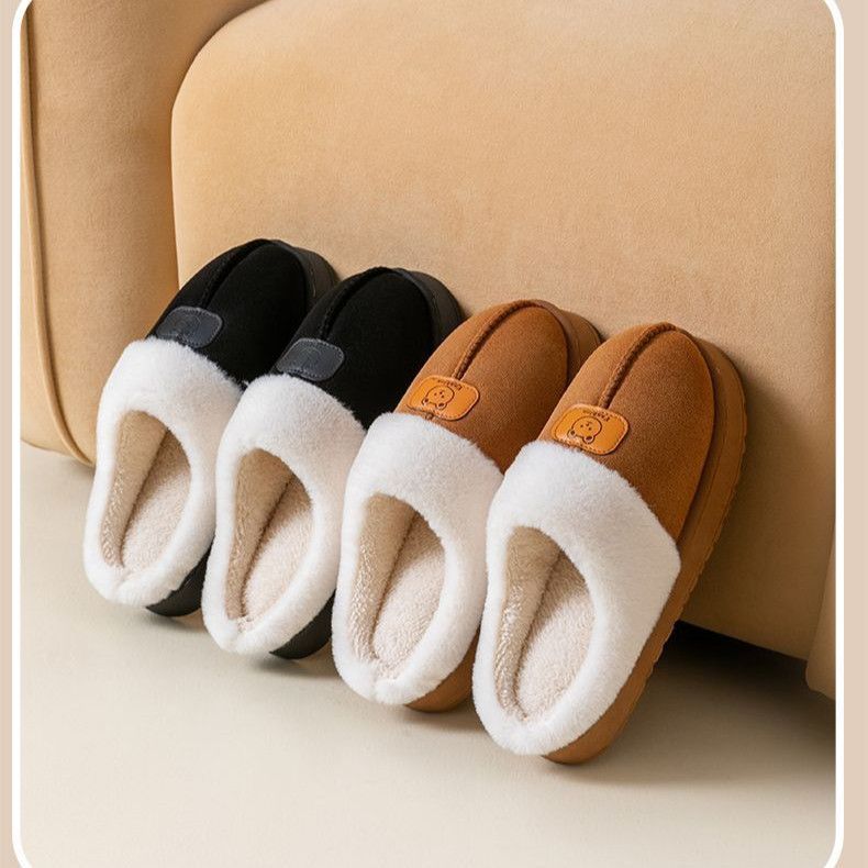 Einfache Baumwollpantoffeln Damen Saison Zuhause Wohnheim Dicke Sohle Samt Warm Paar Tragen Plüsch Einschluss Pantoffeln Herren