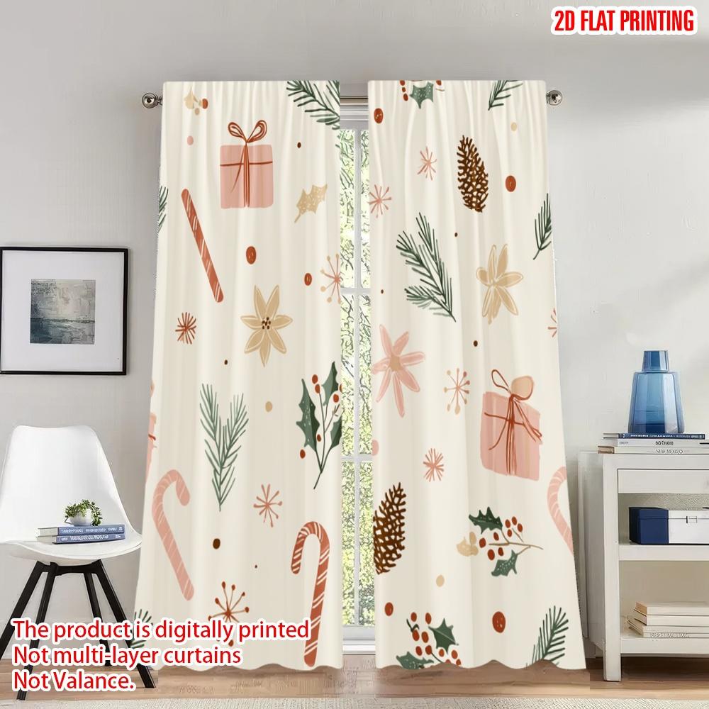 2pcs 2D flat printing Happy Christmas Scene Curtains Christmas Wrapping Paper Gifts Pinecones Digital Printed Polyester Drapes