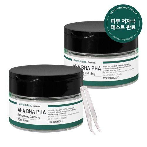 FoodaHolic (1+1) AHA BHA PHA Erfrischende Beruhigende Toner-Pads 70 Stück (120ml) / Reizarm, talgregulierend, beruhigend_631373