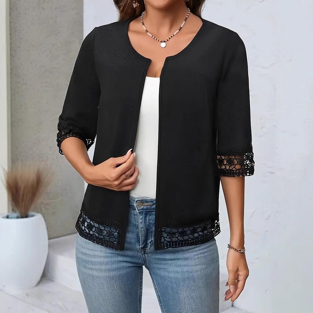 VEZFAA Damenmode, lässig, Sommer, Frühling, einfarbig, 1/2-Ärmel, O-Ausschnitt, Blusen und Hemden