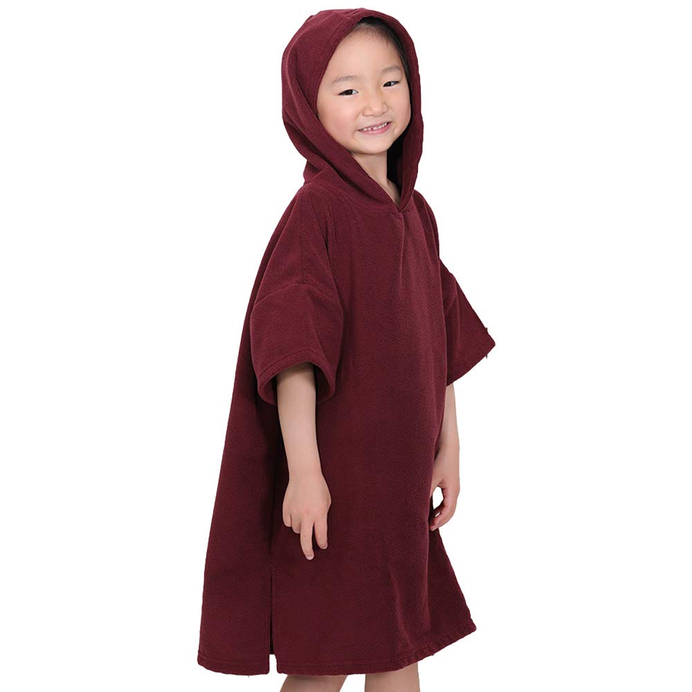 FELLOW Kinder Wechselponcho, Mikrofaser, Saugfähig, Schnelltrocknend, Mit Kapuze, Strandtuch, Badetuch, Weinrot, Einheitsgröße
