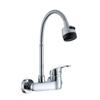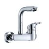 Wandmontierte Küchenarmatur Messing Chrom Zwei-Loch Heiß Kaltwasser Mischbatterie Schwenkbarer Auslauf Wischbeckenhahn