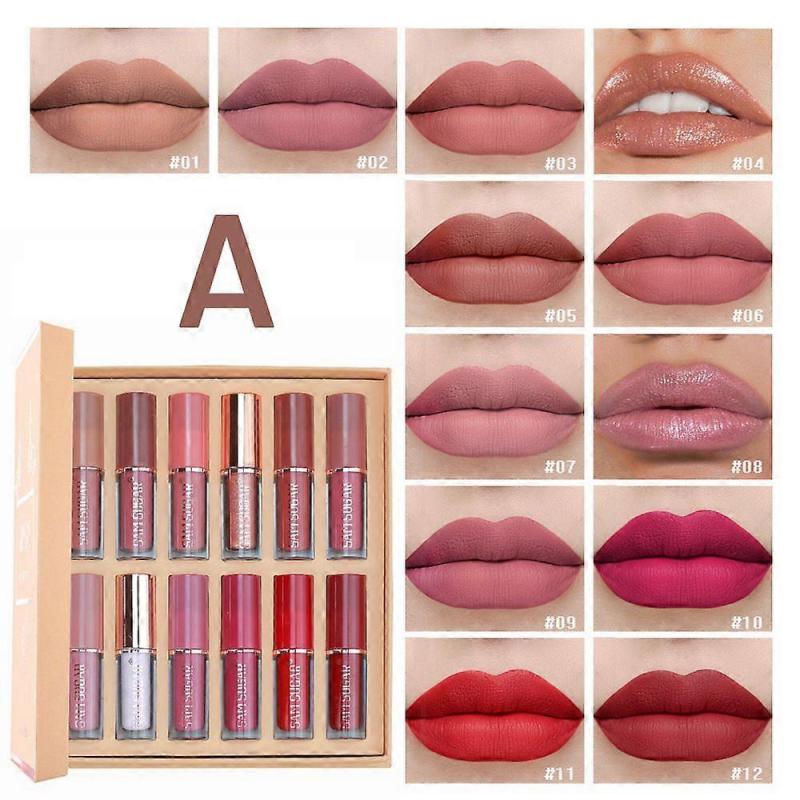 12er Set Samt Mattes Flüssig-Lippenstift-Set, Wasserdicht Langanhaltend Schnelltrocknend Nicht an Tasse haftend Nude Lippenstift-Stain-Set, Bis zu 24 Stunden Halt, Professionelles Lippen-Make-up