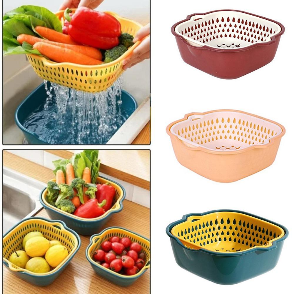 2-in-1 Doppelschicht-Abtropfkorb Aufbewahrungskorb Multifunktionaler Küchen-Abtropfkorb Behälter Aufbewahrung Obst- und Gemüsebecken