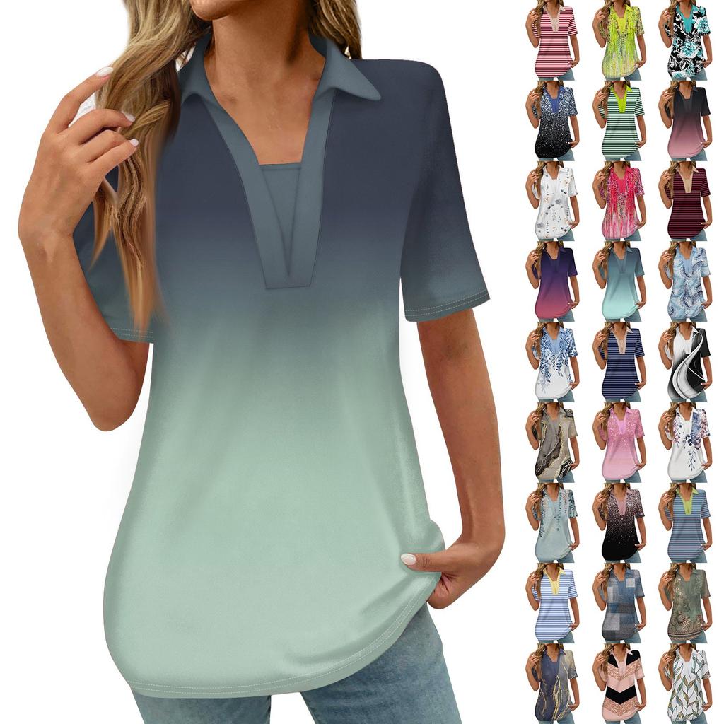 💗 Material: Hochwertiges Material, weich und atmungsaktiv. Angenehmes Anfassen und lockere Passform, angenehmer Tragekomfort. Damen Sommer Tops Damen Casual Mode Bedruckte Knopfhemden Träger Kalte Schulter Tops Kurzarm V-Ausschnitt T-Shirt
