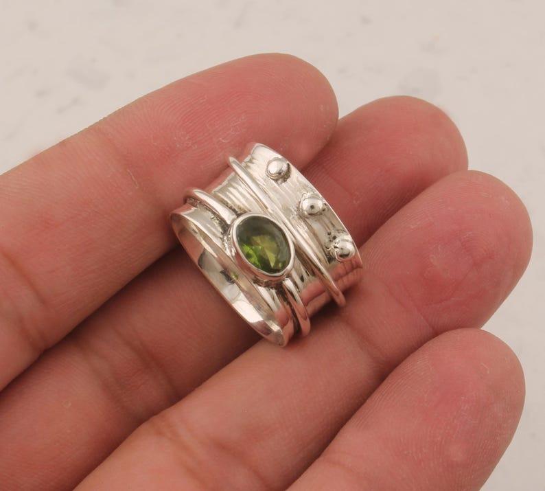 Solid 925 Sterling Silver Peridot Gemstone Spinner Band Meditation Ring Jewelry Unisex Gift Statement Ring