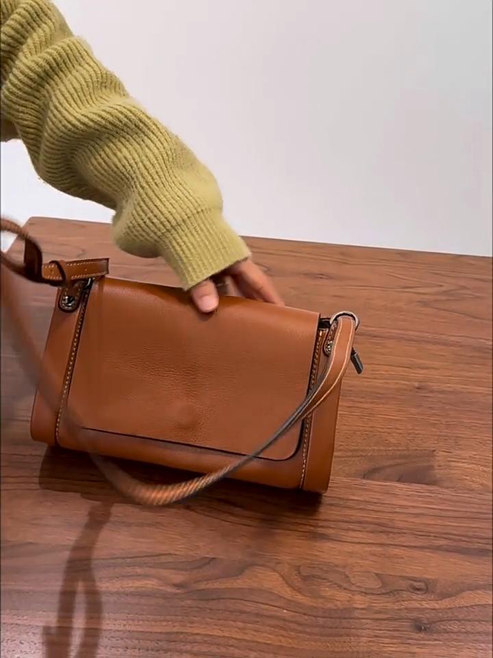 Johnature Echte Leder Damen Tasche Retro Postboten Tasche Vielseitig Weiches Rindsleder Einfarbige Umhängetasche