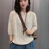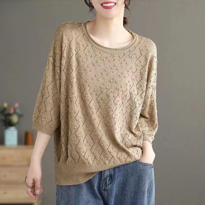 Women's Plus Size Knit Sweater Spring Autumn Summer Solid Round Neck Knit T-Shirt Vintage Short Sleeve Thin Knit Pullover Top