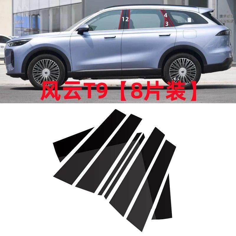 For Chery Tiggo 9 8L Fulwin T9 2024 2025 2026 8pcs Anti-scratch Black Window Trim Covers B C Pillars Center Column Accessories
