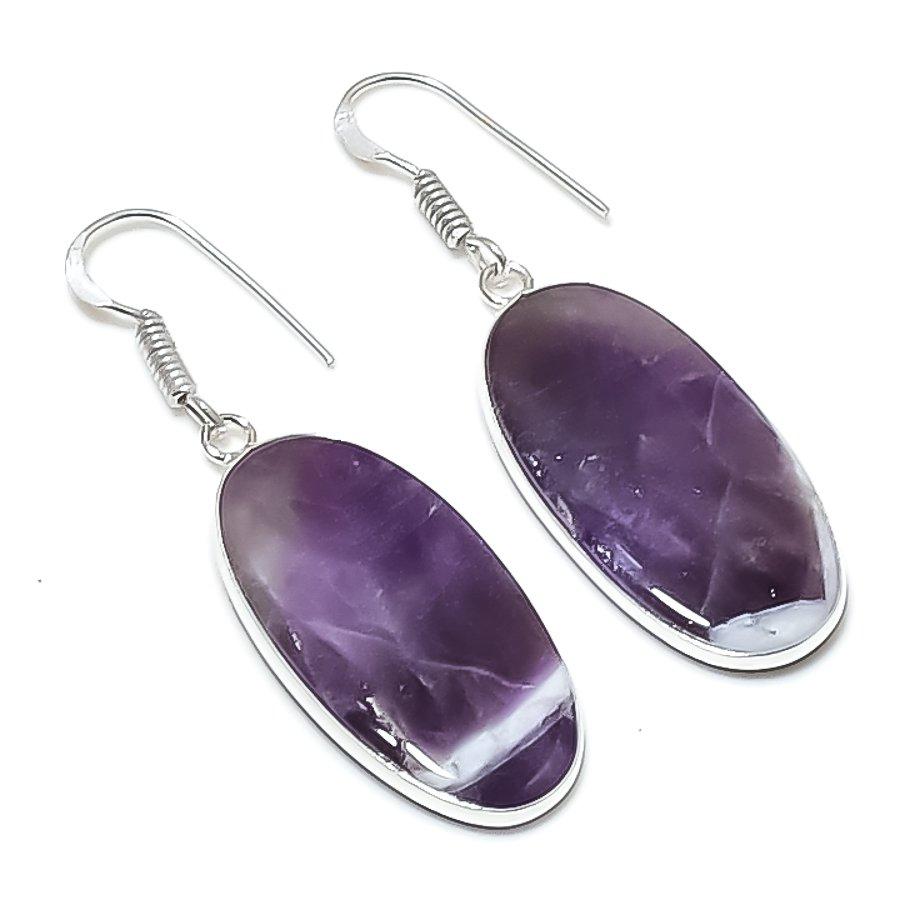 Natürlicher Chevron-Amethyst Edelstein 925 Sterling Silber Schmuck Ohrring 1,97" AEE-10827