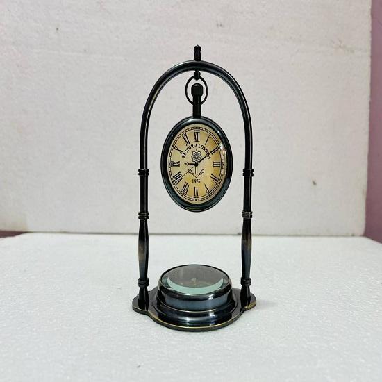 Hanging Brass Desk Clock with Compass Nautical Decorative Timepiece
