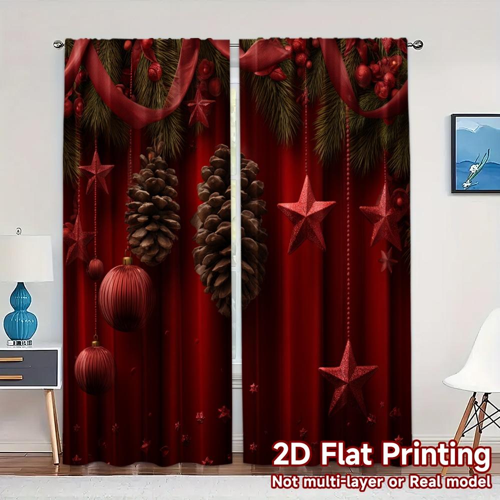 2D-Flachdruck JIT 2-teilige Vorhänge (Ohne Stange) Festliche Kieferndekoration Moderne Druckvorhangstoffe Vorhangstoffe Geschenke Verwendung für