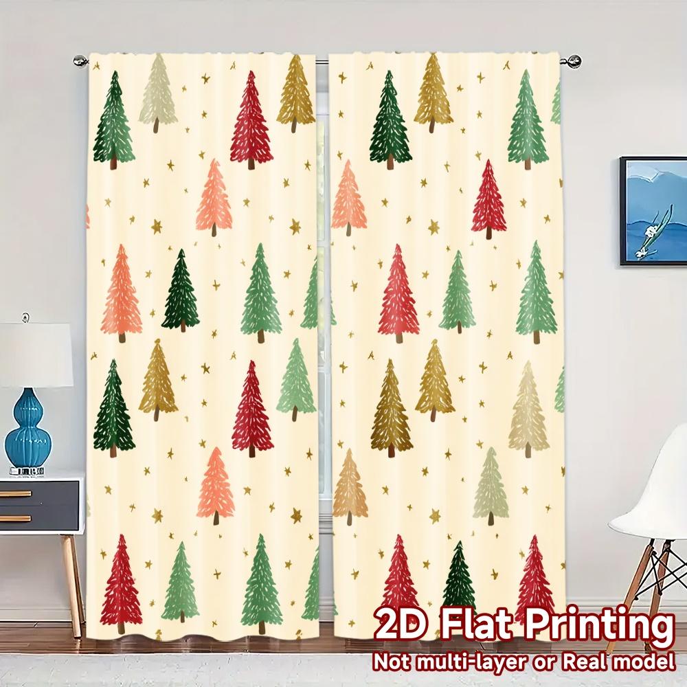 2D-Flachdruck JIT 2-teilige Vorhänge (Ohne Stange) Festliche Immergrüne Beliebte Fenstergardinen Langlebige Polyestervorhänge Zuhause