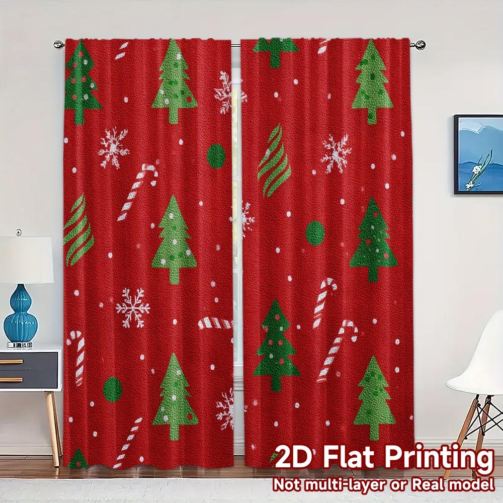 2D Flat Printing JIT 2pcs Curtains (Without Rod) FestiveGreeting Chic Curtains Digital Printed Versatile Polyester Fabric