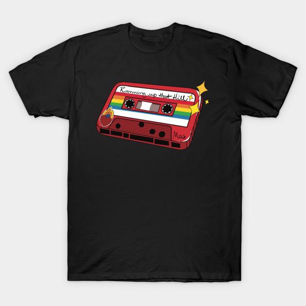 Herren Schwarzes Print-T-Shirt Stranger Things - Kassette: Running Up That Hill Ohne-Schnitt Transferpapier Druck Baumwoll T-Shirt