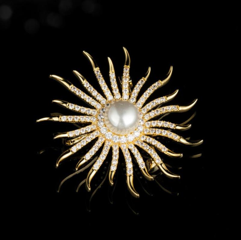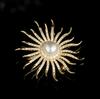 Fashion Rhinestone Jewelry Golden Color Sun Totem Brooches for Women Men Coat Clothing Crystal Sun Flower Brooch Pins