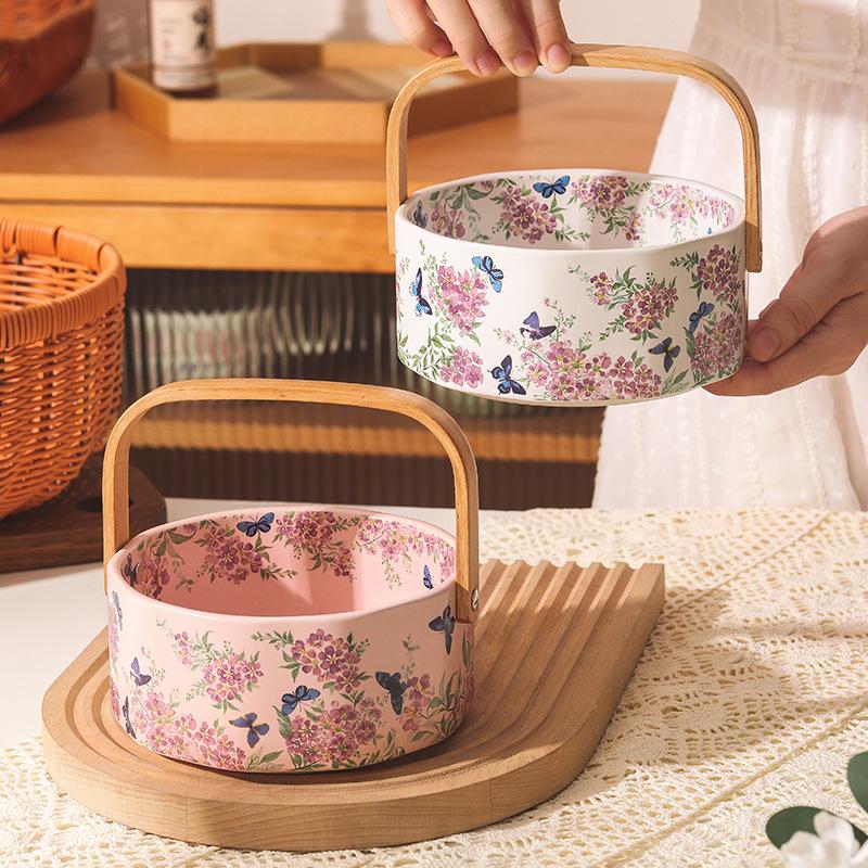 Blühender Keramik Tragbarer Obstkorb Hoher Wert Wohnzimmer Couchtisch Haushalt Obstschale Geschirr Snack Dim Sum Teller