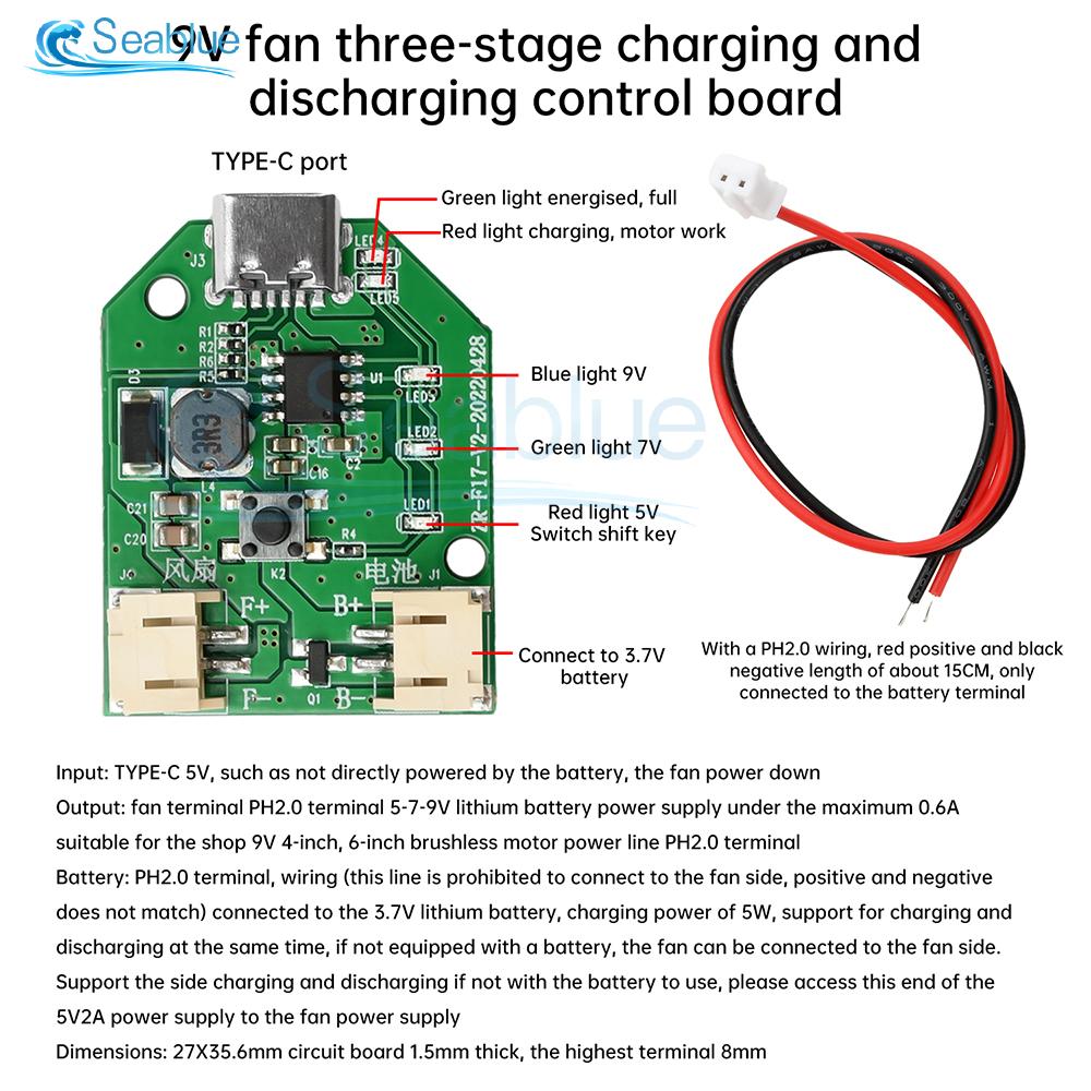Type-C USB Charging Small Fan Board Control Board Motherboard Handheld Small Table Fan Mobile Fan Universal Board 5V 7V 9V 12V